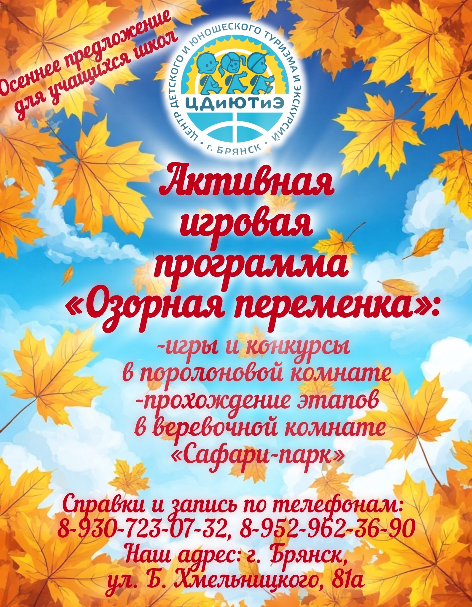 Для школьников города Брянска подготовили увлекательную осеннюю программу «Озорная переменка»:
