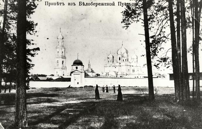«Не было бы счастья, да несчастье помогло», красноречивой иллюстрацией этого крылатого выражения и является история зарождения Белобережской обители. Как говорят монахи: «Господь управил», то есть даже самое, казалось бы, трагическое обстоятельство в итоге обернул во благо. Так 16 монахов во главе с архимандритом Леонидом поселились в пустынном месте, основав скит на белопесочных берегах реки Снежеть. Постепенно из маленького, затерянного в лесах скита, образовалась пустынь с часовенкой, а затем и единственным деревянным храмом в честь Рождества Иоанна Предтечи. А через полвека на этом месте устремился золочёными куполами к небу величественный монастырь.