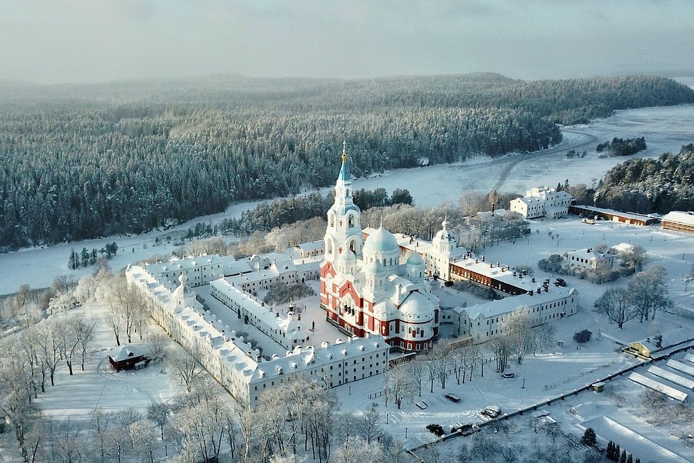 Валаамский монастырь. Валаамский Спасо-Преображенский мужской монастырь в летнее время полон паломников и туристов… Зато зимой эти места трогают сердце тончайшей тишиной и умиротворением. В зимнее время года удобнее всего добираться сюда на автомобиле из Сортавалы по льду замерзшего Ладожского озера. Согласно древнему преданию, на Валаамском архипелаге проповедал Евангелие апостол Андрей, который благословил острова и водрузил крест на скалах крупнейшего острова. Православная вера сохранялась на Валааме в течение веков, вплоть до прибытия сюда святых Сергия и Германа. Это произошло еще до Крещения Руси. Само за себя говорит второе «народное» название монастыря – «Северный Афон». Особая благодатная атмосфера ощущается на Валааме именно зимой за пределами шумного и беспокойного туристического сезона.